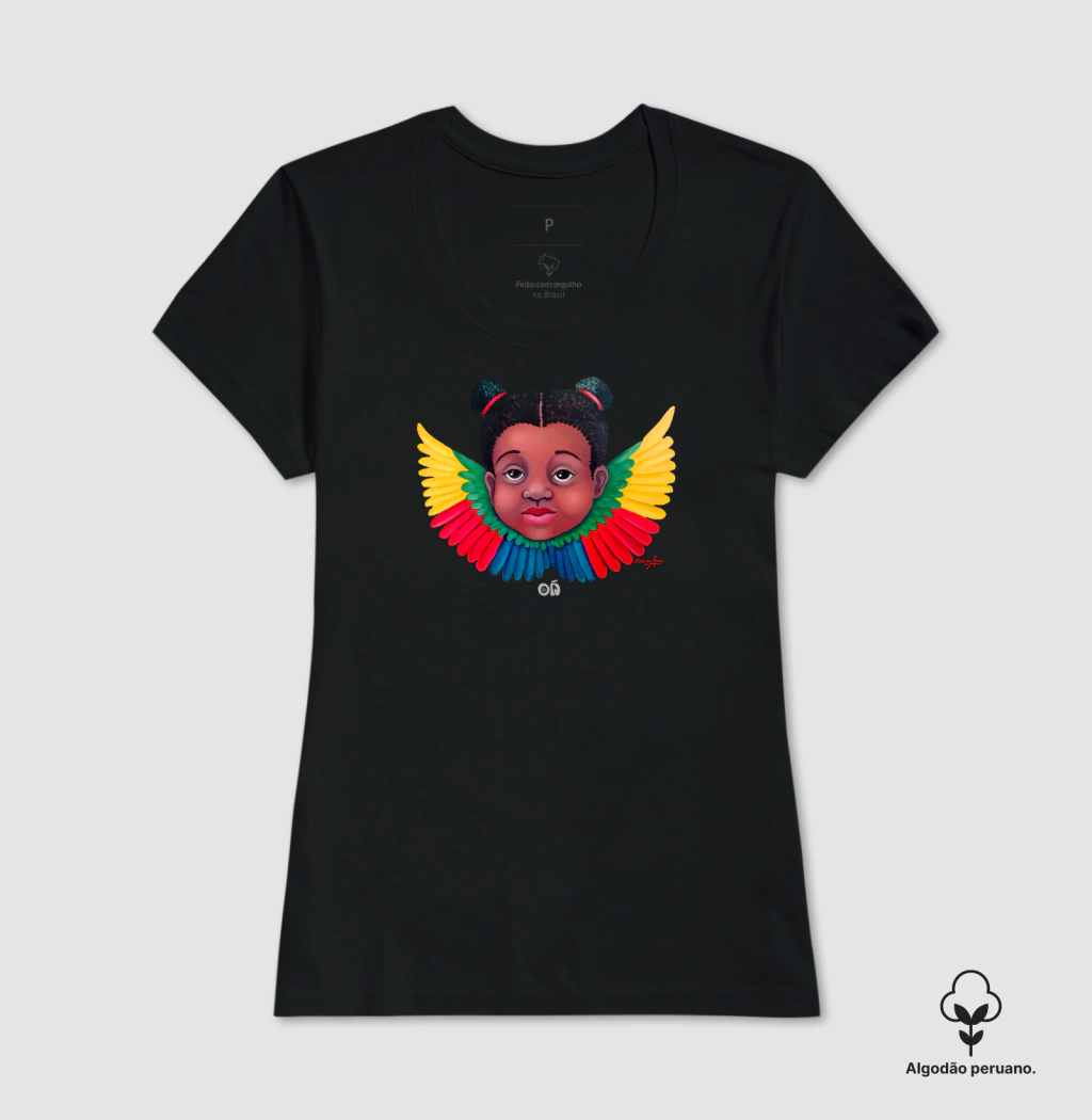 A estampa é realizada com tecnologia de ponta em impressão direta no tecido, resultando em uma qualidade de impressão excepcional que destaca a arte e a mensagem.